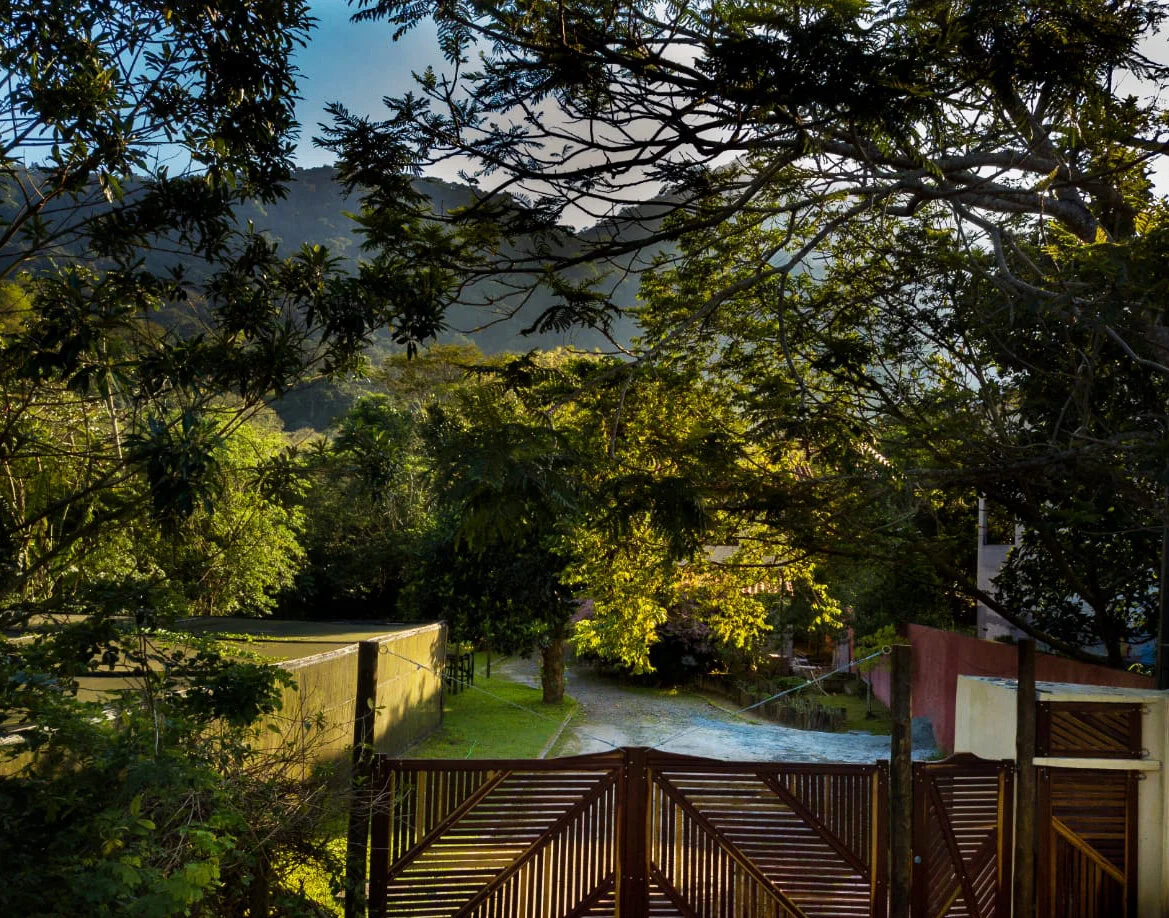 Viveiro de árvores, hospedagem no conceito "casa-hotel", bicicletas, alimentação vegetariana/vegana, salão para práticas de yoga e ecoturismo entre praias, cachoeiras, Floresta Atlântica e Serra do Mar.